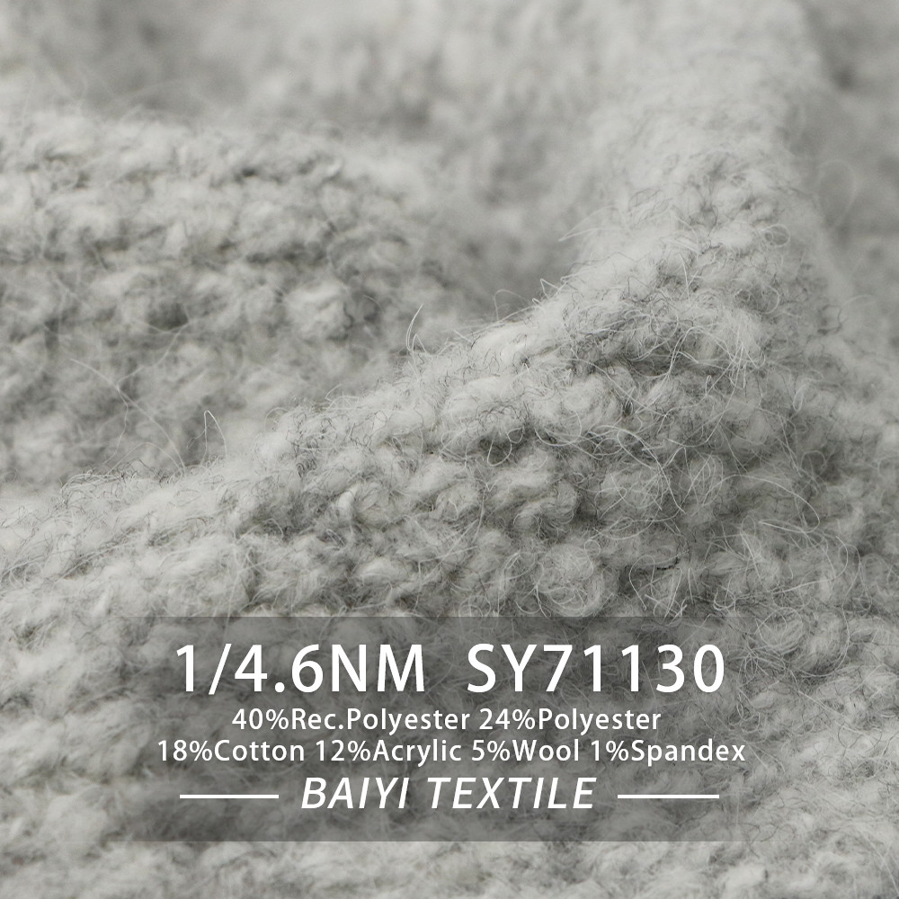 Eigenschap: Pluizig, anti-pilling, verwarm Composition: 40%Rec.Polyester 24%Polyester 18%Cotton 12%Acrylic 5%Wool 1%Spandex